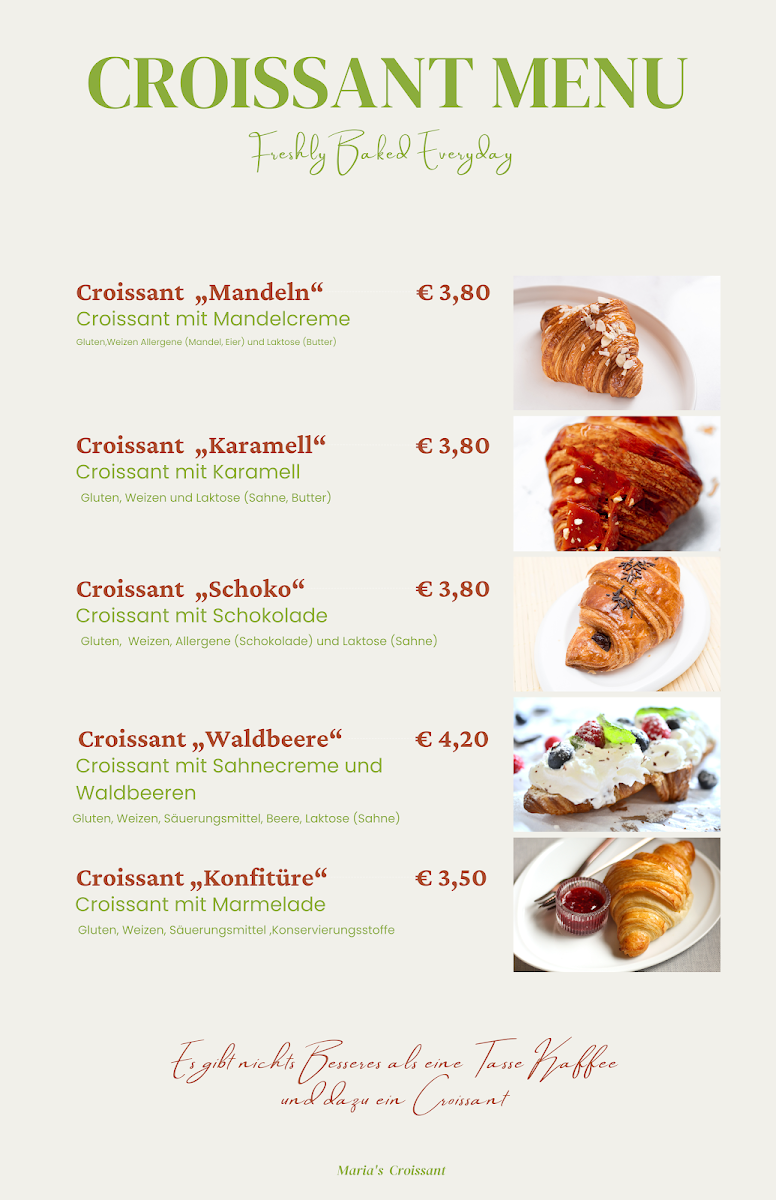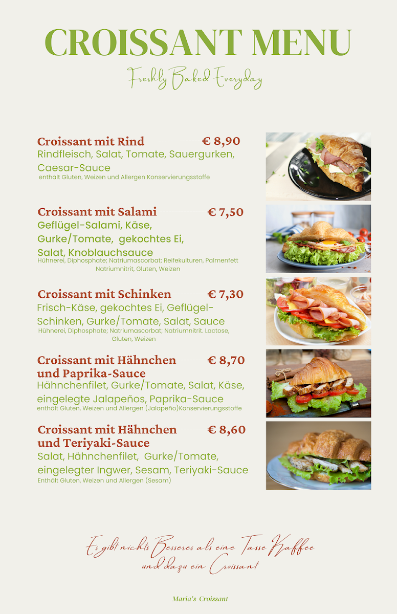 Welcome to Maria’s Croissant, a delightful cafe and bistro nestled in the heart of Dresden on Königsbrücker Str. This charming spot specializes in a wide array of croissants that cater to every palate. From savory options like the Thunfischegg croissant, enhanced with a zesty honey mustard dressing, to sweet treats such as the almond croissant, the menu is designed for culinary exploration.
